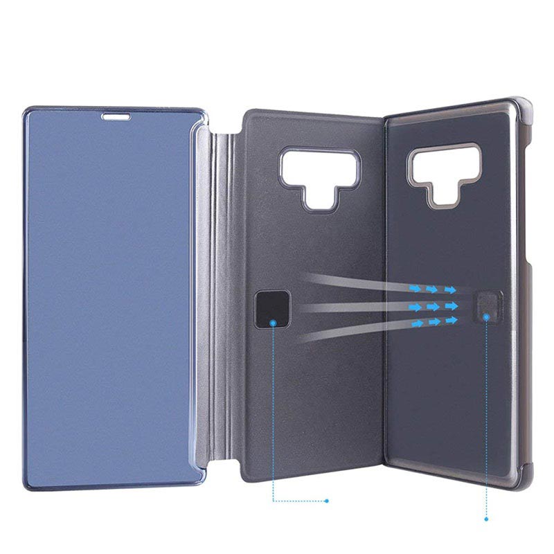 Toto převrácené pouzdro s nanesenou zrcadlovou frontou nejen nepřináší velkou ochranu pro vaši Samsung Galaxy Note9, ale také si udrží svou linii a módní vzhled a zároveň zajistí hojnost užitečnosti. Tento velký případ Samsung Galaxy Note9 obsahuje přední stranu sledování, které vám umožní zkontrolovat a zobrazit všechny důležité informace z zobrazení zařízení bez otevření krytu.