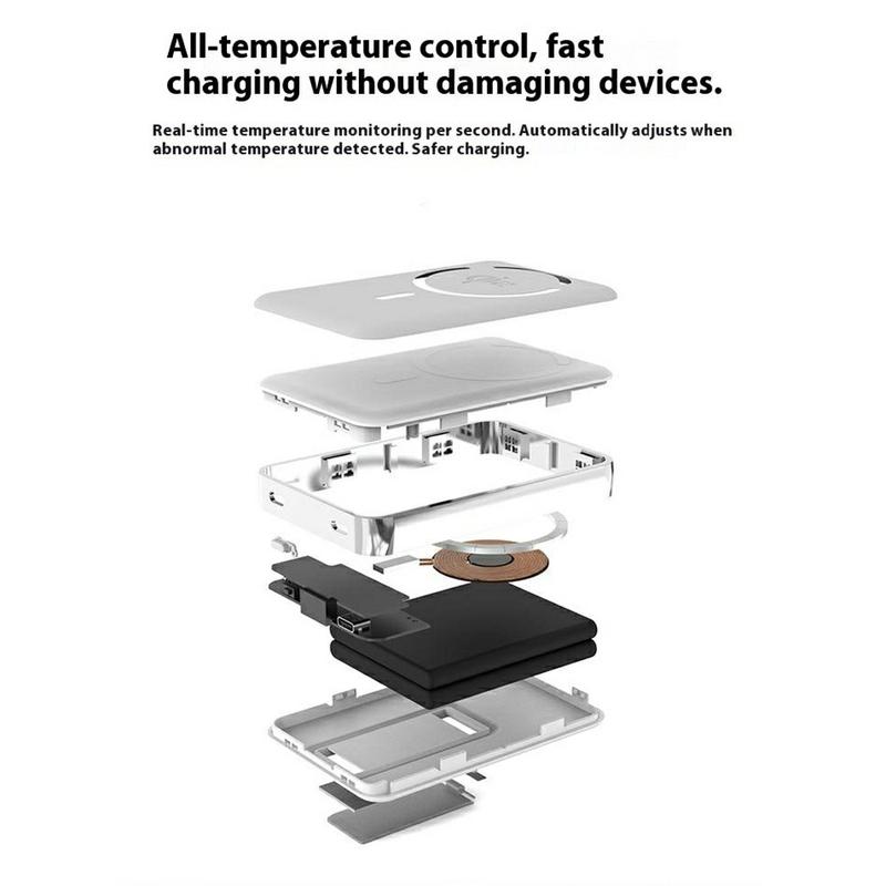 Equipped with dual Type-C ports, this power bank supports up to 35W Power Delivery for rapid wired charging. Charge smartphones, tablets, or other USB-C compatible devices quickly and conveniently.