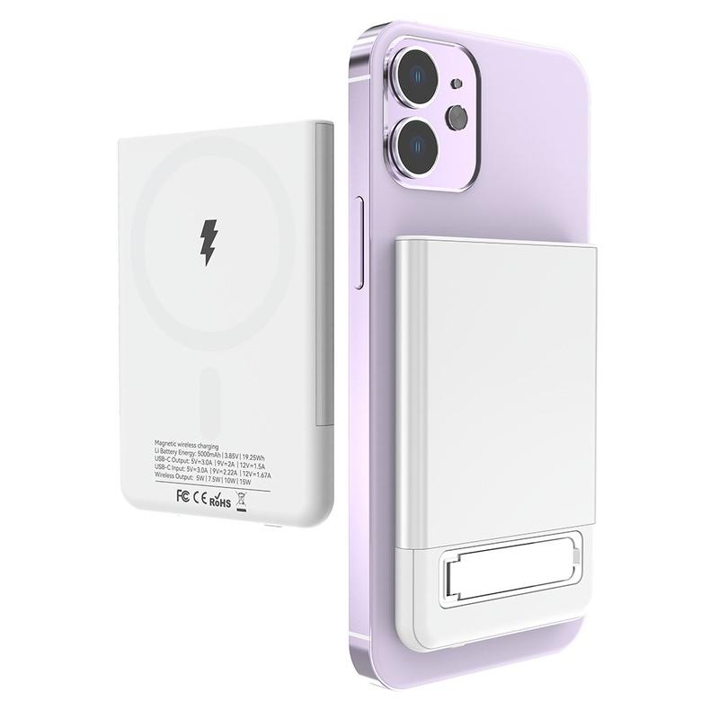 Ultra Thin Metal MagSafe Wireless Charger with Kickstand for iPhone 12/13/14/15/16/17/Air - 15W/5000mAh
