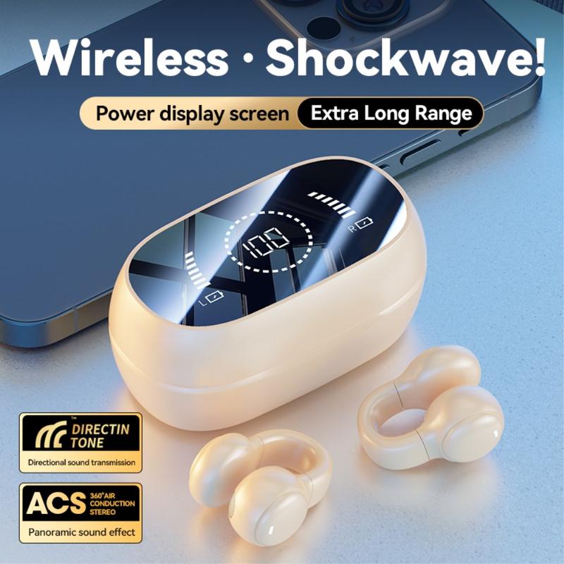 M47 Earclip Bone Conduction Wireless Headphone with Mic Bluetooth 5.3 Gaming Headset Noise Reduction Sport Earphone - Nude
