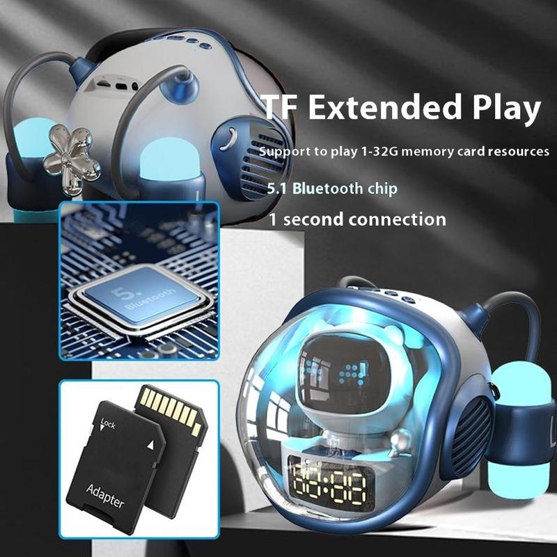 M60 Spaceship Shape AI Bluetooth Speaker with Alarm Clock - Dual RGB Lights, TF/FM Support