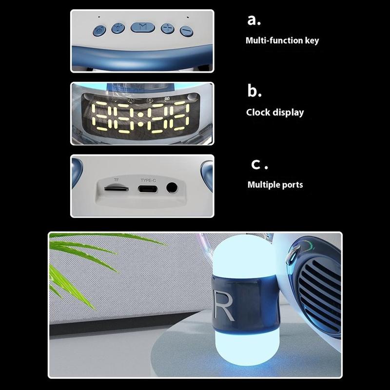 The M60 Spaceship Shape AI Bluetooth Speaker with Alarm Clock is a perfect blend of futuristic design, smart features, and high-quality sound, making it an essential addition to any modern lifestyle.