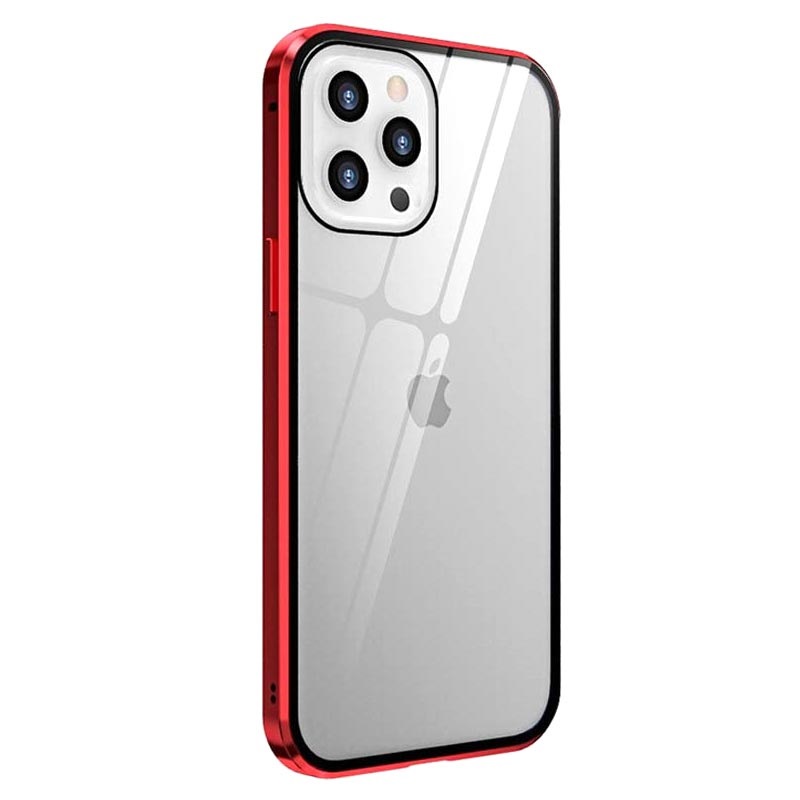 Magnetické pouzdro pro iPhone 12/12 s temperovaným sklem - červená