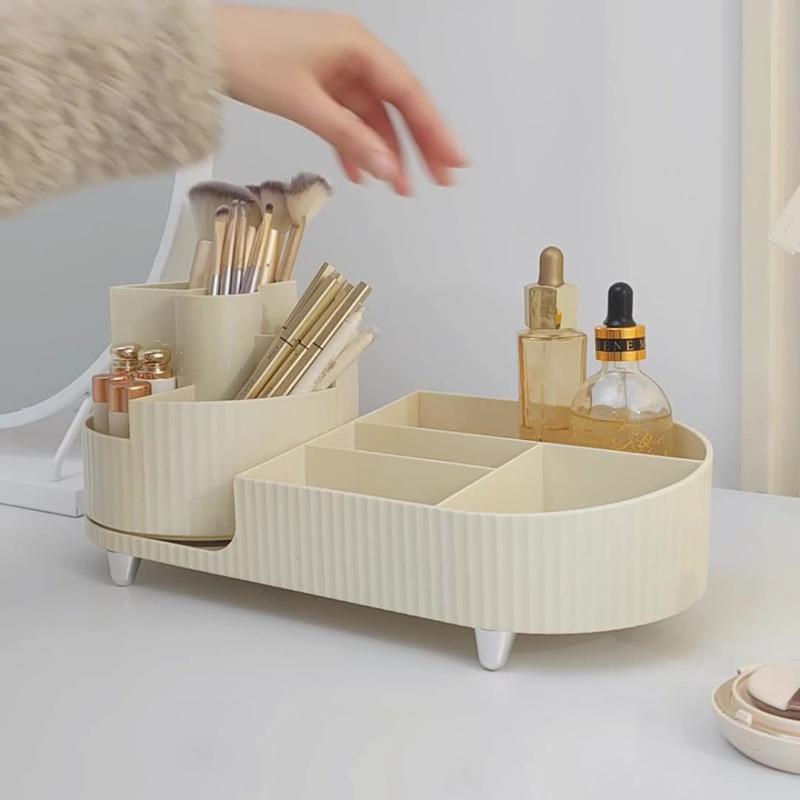 The round brush holder rotates freely, allowing quick access to your makeup brushes, pencils, or tools. No more searching for your essentials - everything stays visible and within reach.