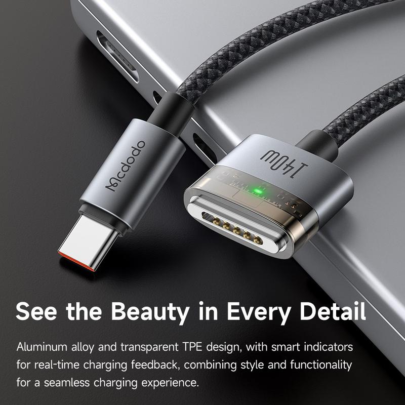 Mcdodo CA-207 140W USB-C to MagSafe 3 Charging Cable - 2m - Nylon Braided with Indicator Light