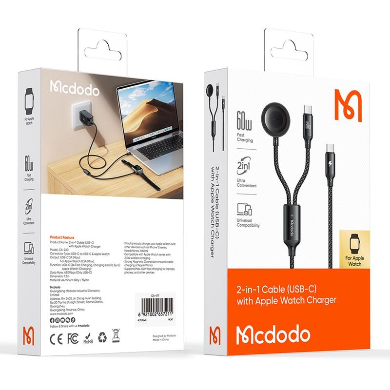 Mcdodo CA-2200 USB-C Charging Cable with Apple Watch Wireless Charger - 1.2m/60W
