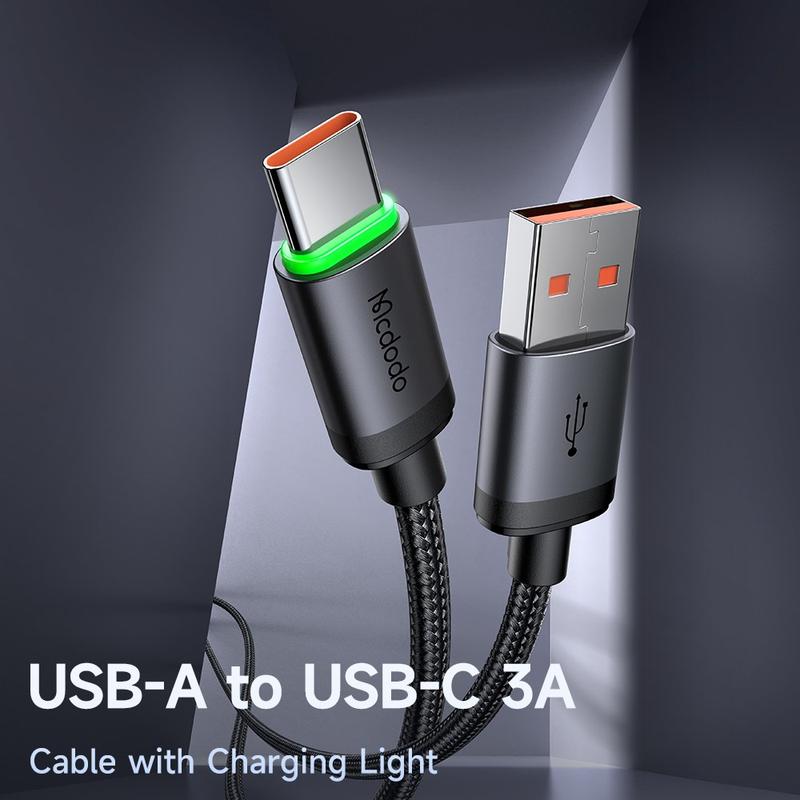 Mcdodo CA-3960 USB-A to USB-C Fast Charging Cable 1m with LED Charging Light - 3A QC Fast Charge & 480 Mbps Data Transfer, Nylon Braided