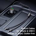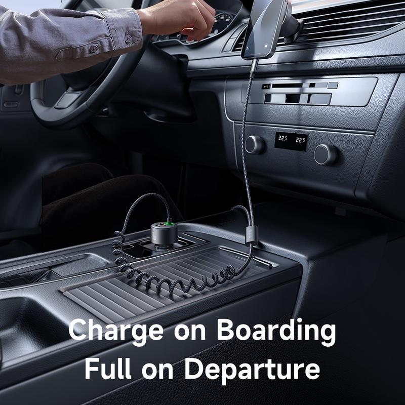 - Coiled “spring” cables extend when pulled but retract neatly between uses, reducing wear on charging ports and keeping the cabin clutter-free.