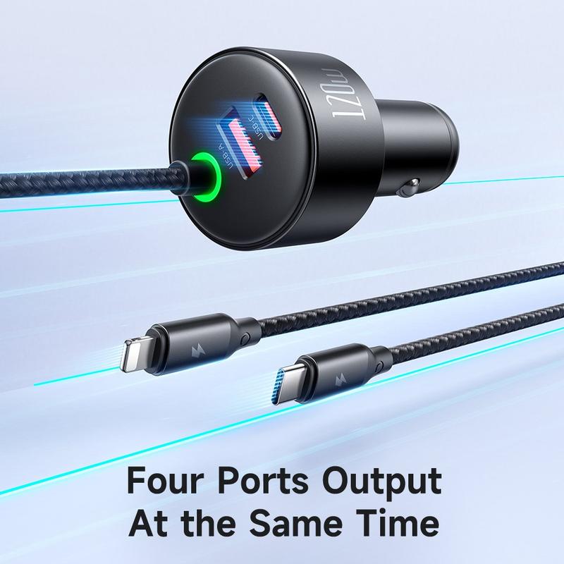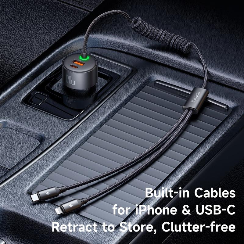 Mcdodo CC-037 120W Dual-Port Car Charger with USB-C and Lightning Cables