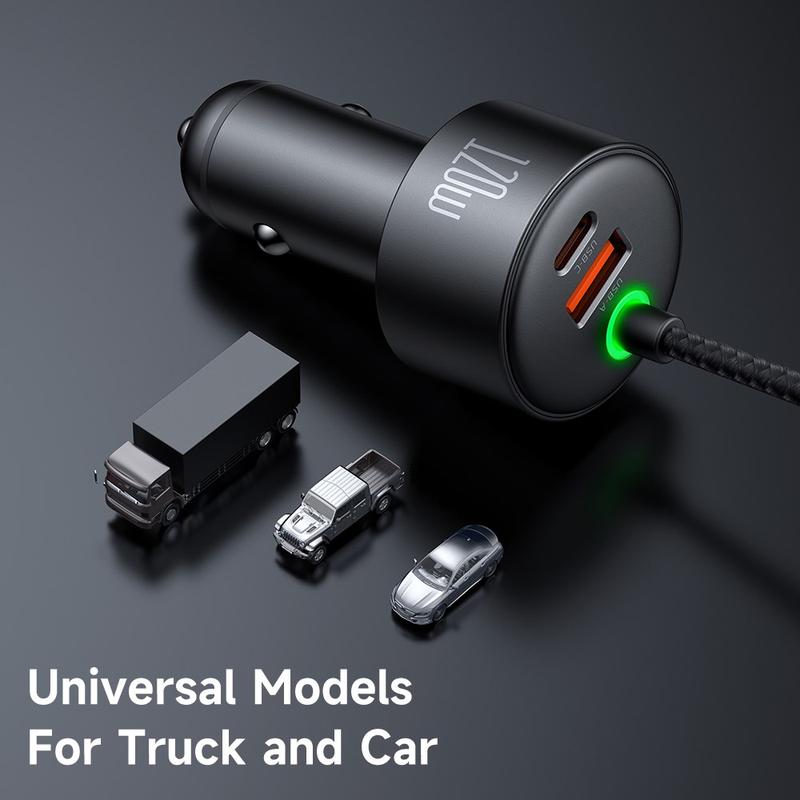One compact adapter replaces a tangle of separate cords and under-powered bricks. With dual ports plus two fixed leads, every device in the car can draw exactly the wattage it needs—no slow trickle, no cable hunt, no wasted time at service stations.