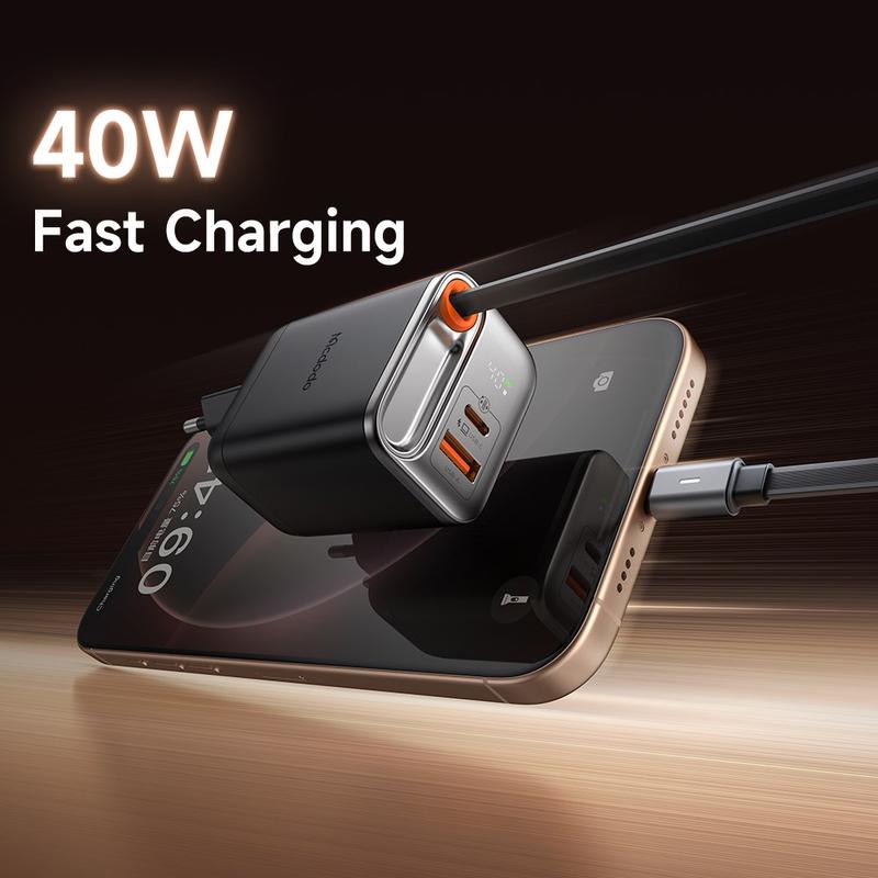 • Mcdodo CH-4281 40W GaN Fast Charger with 65cm Retractable USB-C Cable and USB-C, USB-A Ports