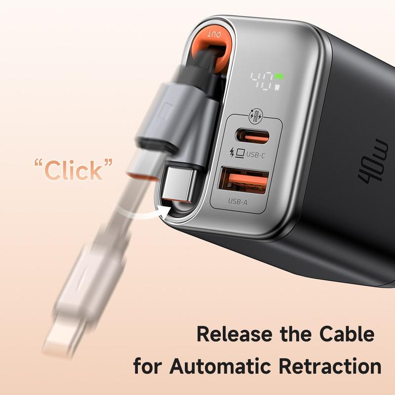Compact enough to slip into a jacket pocket, yet powerful enough to top-up a MacBook Air or Galaxy S24, this GaN charger folds three essentials into one: a high-efficiency 40W USB-C output, a versatile USB-A fast-charge port, and a neat 65cm cable that winds away with a click.