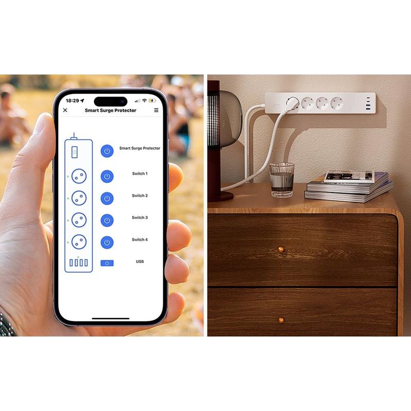 Using the Meross app or a Matter-compatible ecosystem, you can independently turn each of the four outlets on or off, as well as control the USB port group. Manage your devices from anywhere — whether you're at home, at work or traveling.