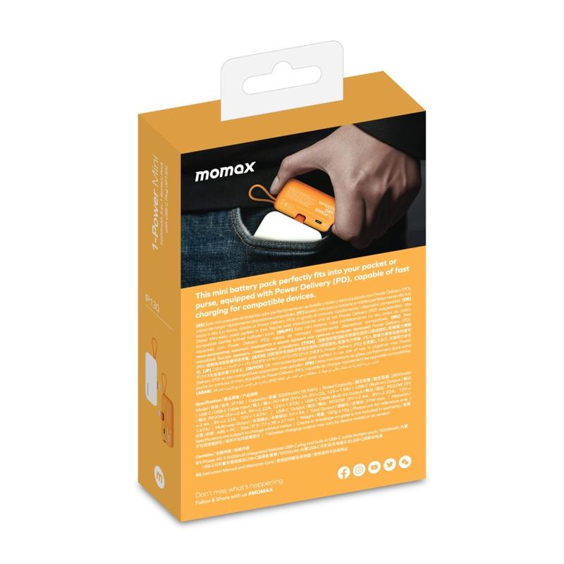 Momax 1-Power Mini Pop Art 5000mAh Power Bank / Portable Charger with USB-C Plug, USB-C Cable, USB-C Port - 20W