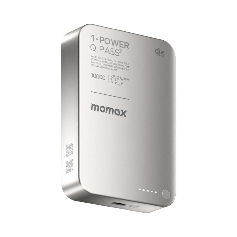 Power up fast and stay cable-free with the MOMAX 1-Power Q.Pass2 Qi2.2 magnetic wireless power bank. Built for iPhone 12-17 series, it snaps on magnetically for a secure hold and starts charging instantly—perfect for commuting, travel, and busy days. With Qi2 25W wireless output (MPP), it delivers efficient magnetic charging, while the USB-C PD up to 30W port gives you a high-speed wired option for phones, tablets, and other compatible devices. The 10000mAh capacity helps you get through multiple charges, and the premium glass + aluminium construction with anti-slip edges makes it feel as good as it performs.