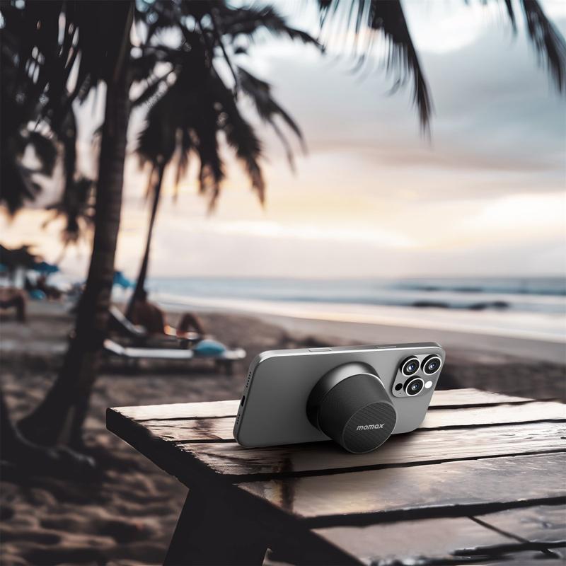 Momax 1-Vibe Go BS6 Magnetic Mini Bluetooth Speaker and Phone Stand, 360° Sound and IPX6 Waterproof
