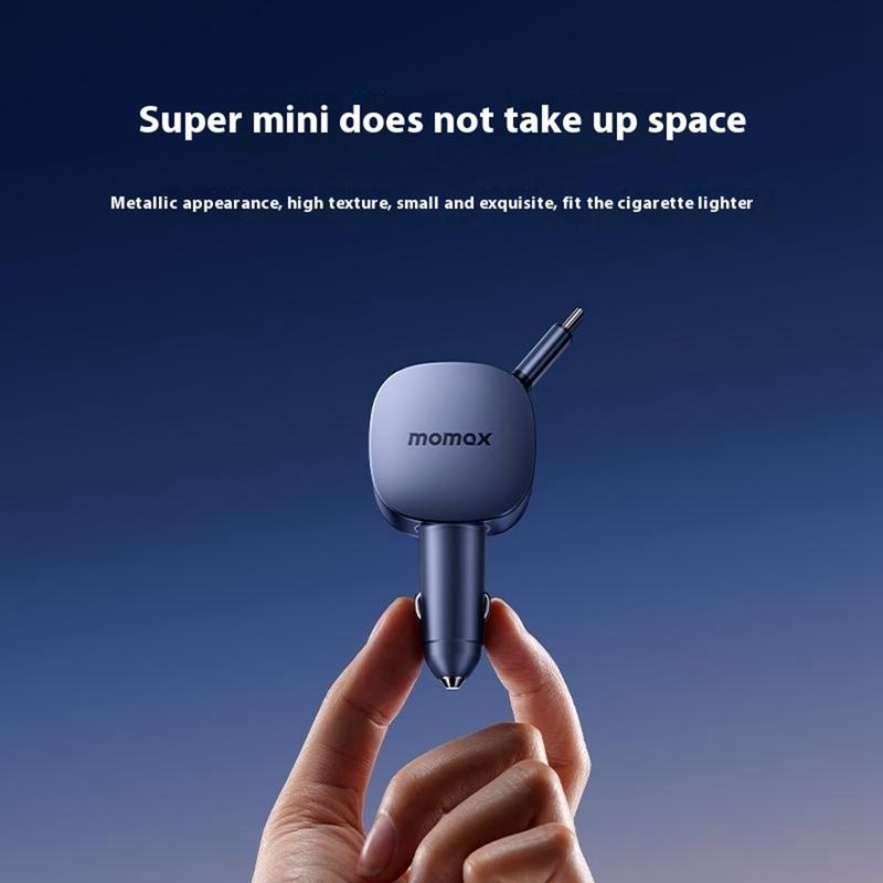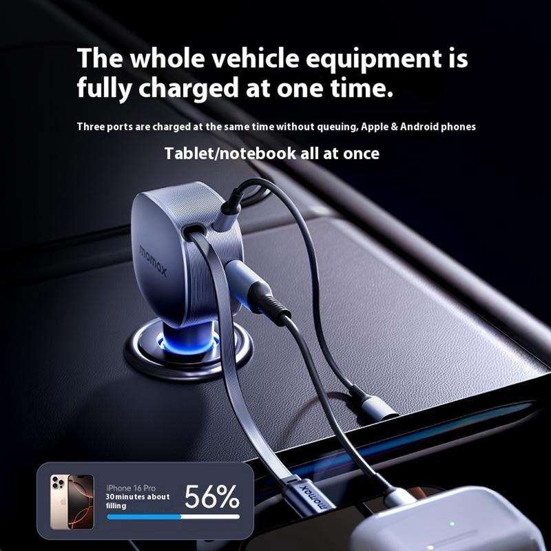 Momax 60W Car Charger - Retractable 30 W USB-C Cable + 30 W USB-C Port + 24 W USB-A Fast-Charge Adapter