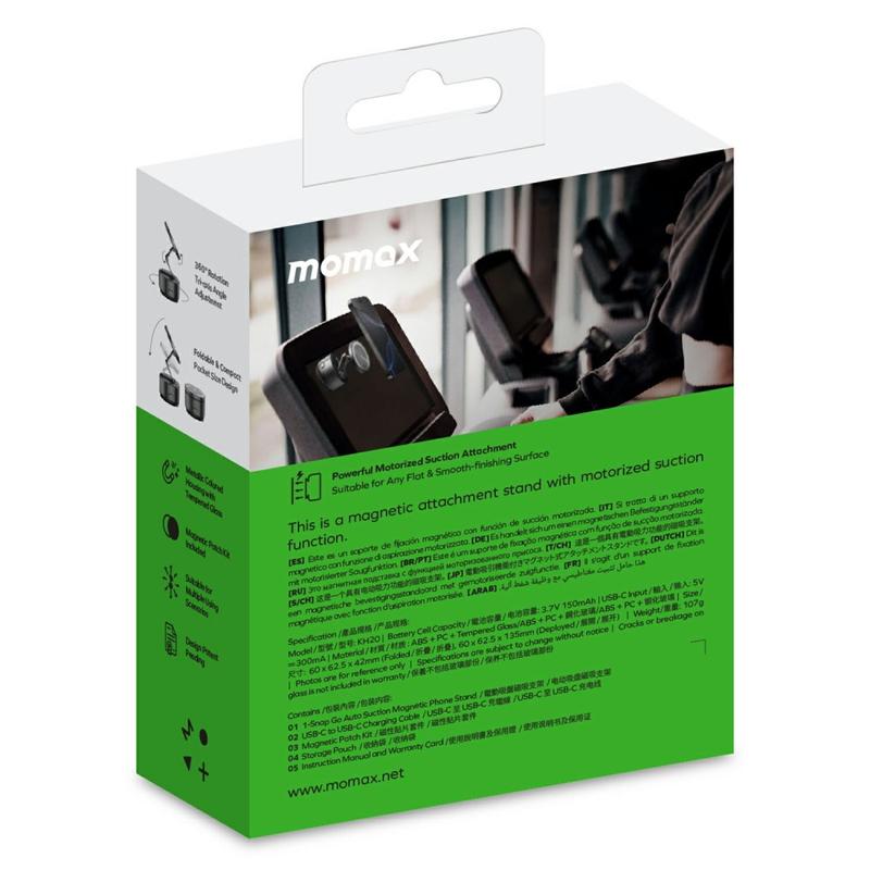 Momax KH20 1-Snap Go Electric Magnetic Phone Holder - Motorised Auto Suction Mount, Tri-Axis Foldable Holder with 360 Rotation, USB-C Rechargeable