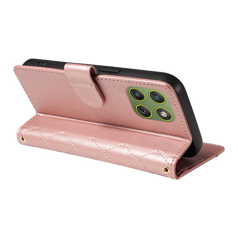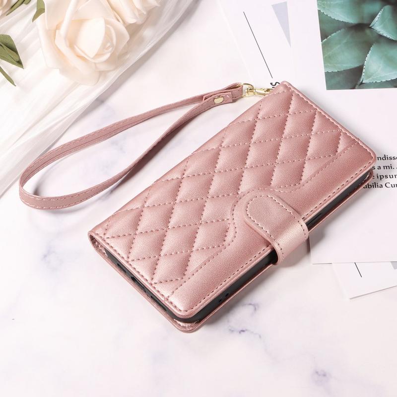 Luxury Quilted Wallet Case with Shoulder & Wrist Strap for Motorola Edge 70 - Rhombus Pattern Protective Cover