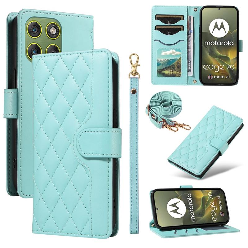 Luxury Quilted Wallet Case with Shoulder & Wrist Strap for Motorola Edge 70 - Rhombus Pattern Protective Cover