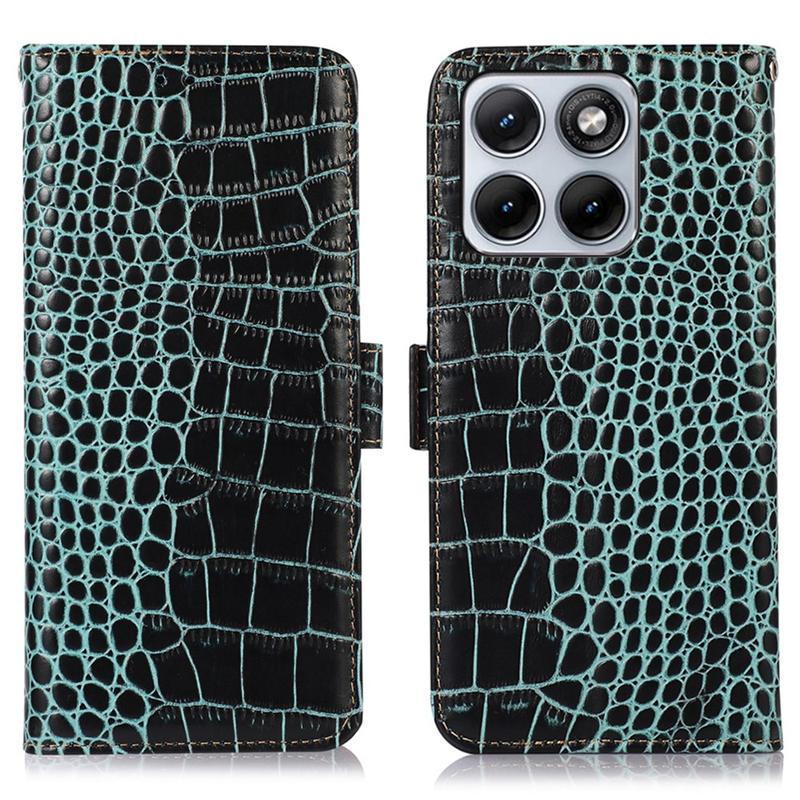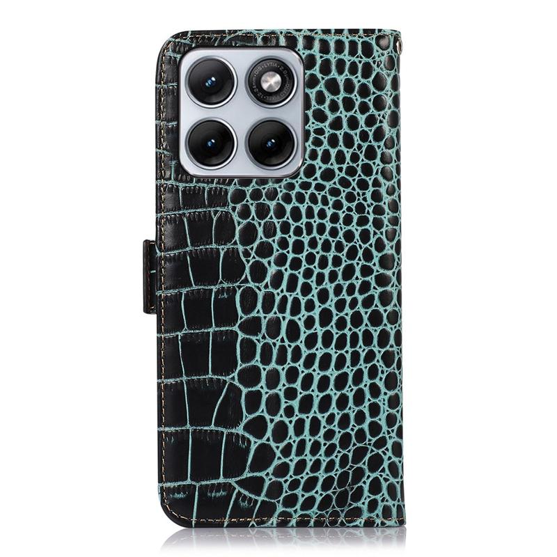A lightweight and soft wallet case with a unique crocodile texture, the perfect choice to protect your Motorola Edge 70 Fusion and keep it undamaged. It's made of high-quality genuine leather and inner TPU material, designed with three card slots, an ID slot, and a pocket for cash, ideal for carrying your essentials next to your Motorola Edge 70 Fusion. Also, RFID technology effectively blocks signals and keep's your data secured.