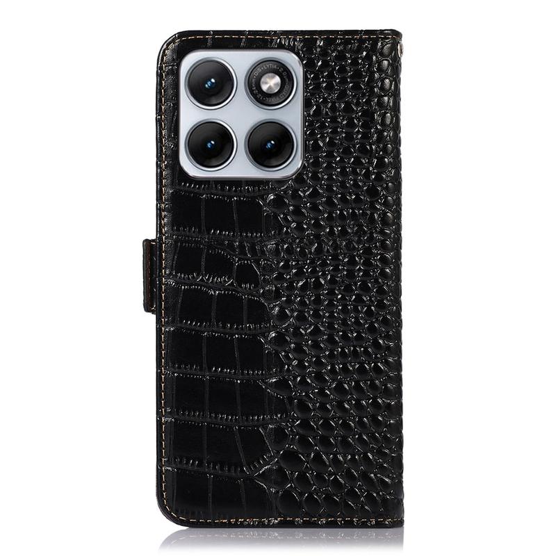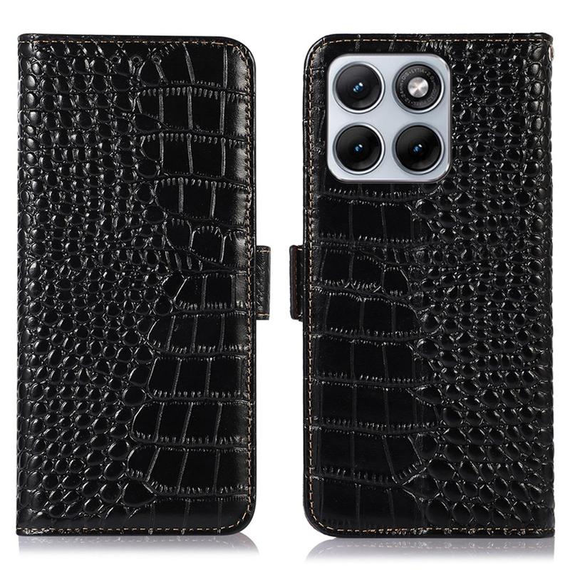 A lightweight and soft wallet case with a unique crocodile texture, the perfect choice to protect your Motorola Edge 70 Fusion and keep it undamaged. It's made of high-quality genuine leather and inner TPU material, designed with three card slots, an ID slot, and a pocket for cash, ideal for carrying your essentials next to your Motorola Edge 70 Fusion. Also, RFID technology effectively blocks signals and keep's your data secured.