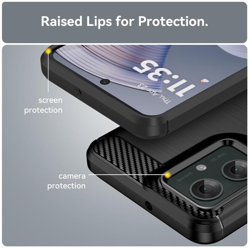 Pouzdro z kartáčovaného TPU dostatečně ochrání váš Motorola Moto G55 a zároveň mu dodá skvělý styl, díky vzoru uhlíkových vláken na zadní straně. Pouzdro také zajišťuje přehřívání při používání vašeho Motorola Moto G55 díky konstrukci odvádějící teplo.