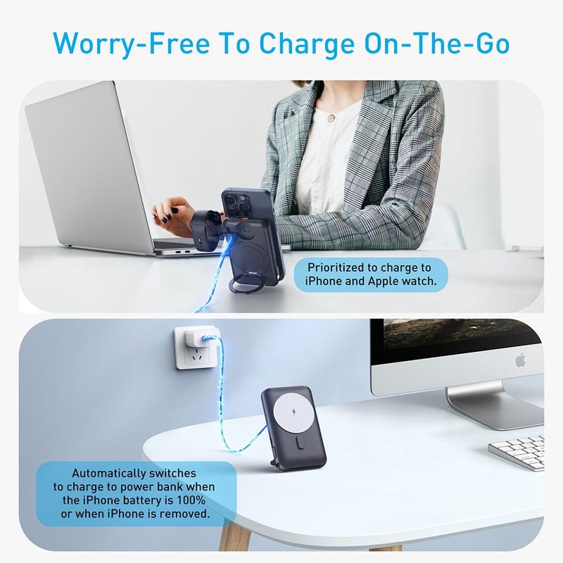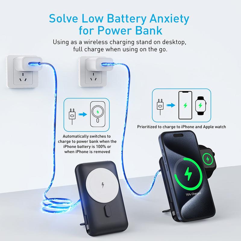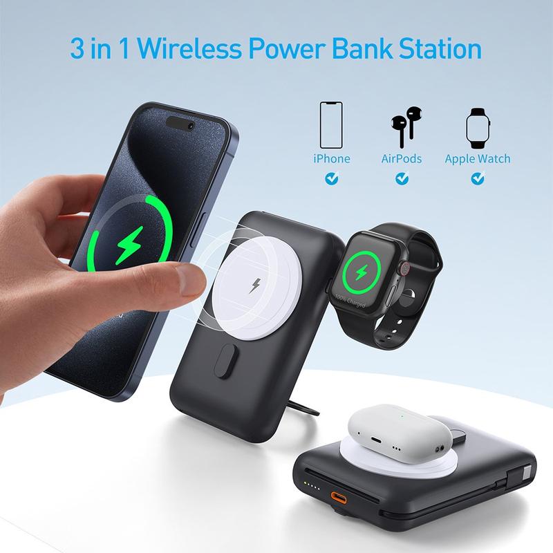 Its 3-in-1 design makes it especially useful for Apple users, allowing you to charge your iPhone, AirPods, and Apple Watch from one device. The built-in stand adds even more everyday value, making it easier to watch videos, check notifications, or join video calls while charging. With 20W wired fast charging, magnetic wireless support, and thoughtful heat dissipation design, the MP07 is made to combine power, portability, and daily convenience in one sleek portable charger.