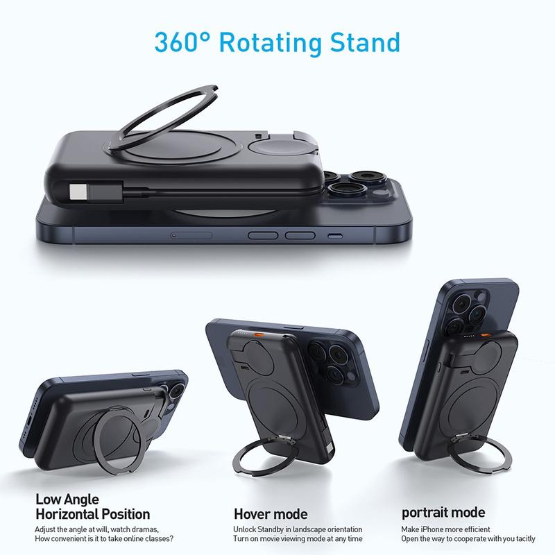 It also stands out because it blends portability with premium practicality. The magnetic charging feature makes phone placement simpler, the built-in cable reduces clutter, and the rotating stand adds a level of usability that many ordinary power banks do not offer. For users who want a more versatile and polished portable charging solution, this is a very strong option.