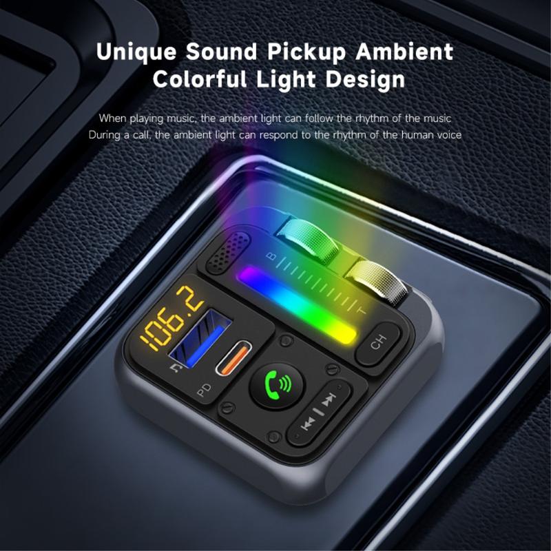 MT04 Car Bluetooth Adapter FM Transmitter HiFi Music MP3 Player Type-C + USB Car Charger