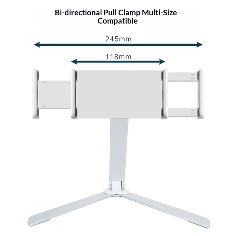 The MT137 foldable stand is designed to support devices from 4.0 to 12 inches, thanks to its dual-direction clamp system. It securely holds smartphones and tablets of various sizes, making it a versatile choice for everyday use.