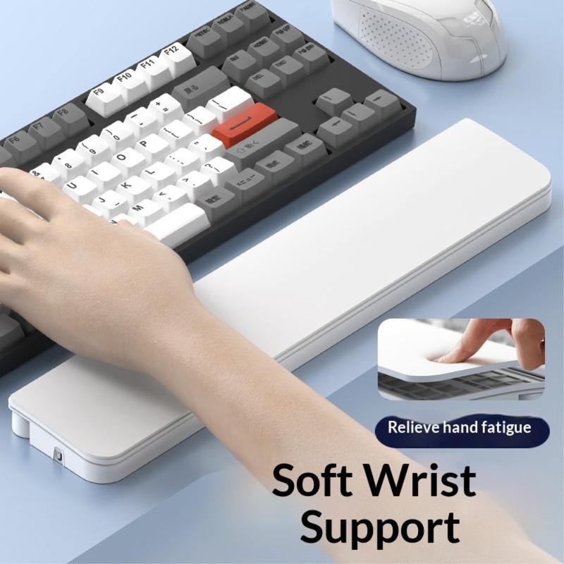 The wrist rest is crafted with soft polyrethane and high-quality foam padding to provide gentle, stable wrist support. Its ergonomic design helps reduce pressure and fatigue during prolonged typing, office work or study sessions.