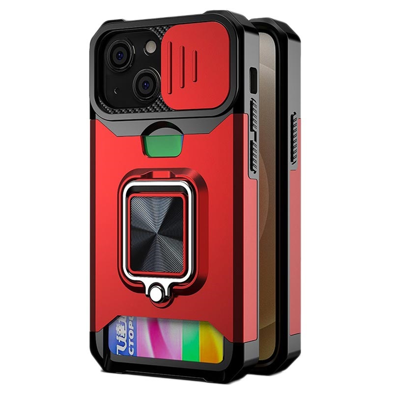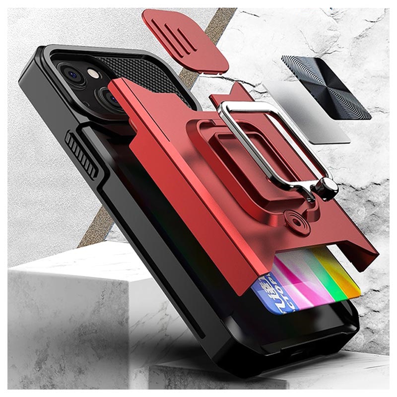 Multifunkční hybridní pouzdro 4-in-1 pro iPhone 13 Mini s držákem karty, magnetickým prstenem, stonkem, ochranou fotoaparátu