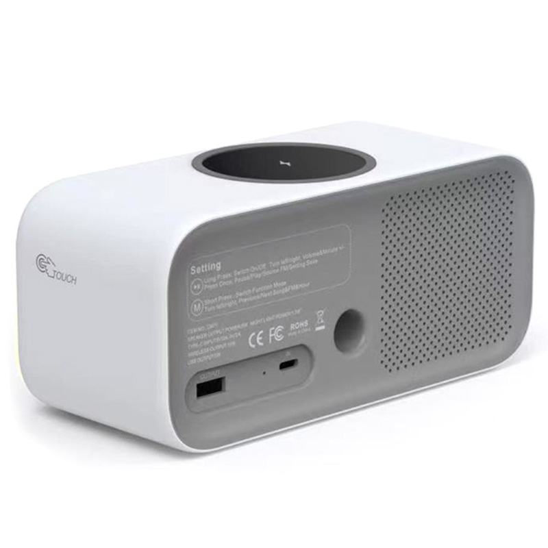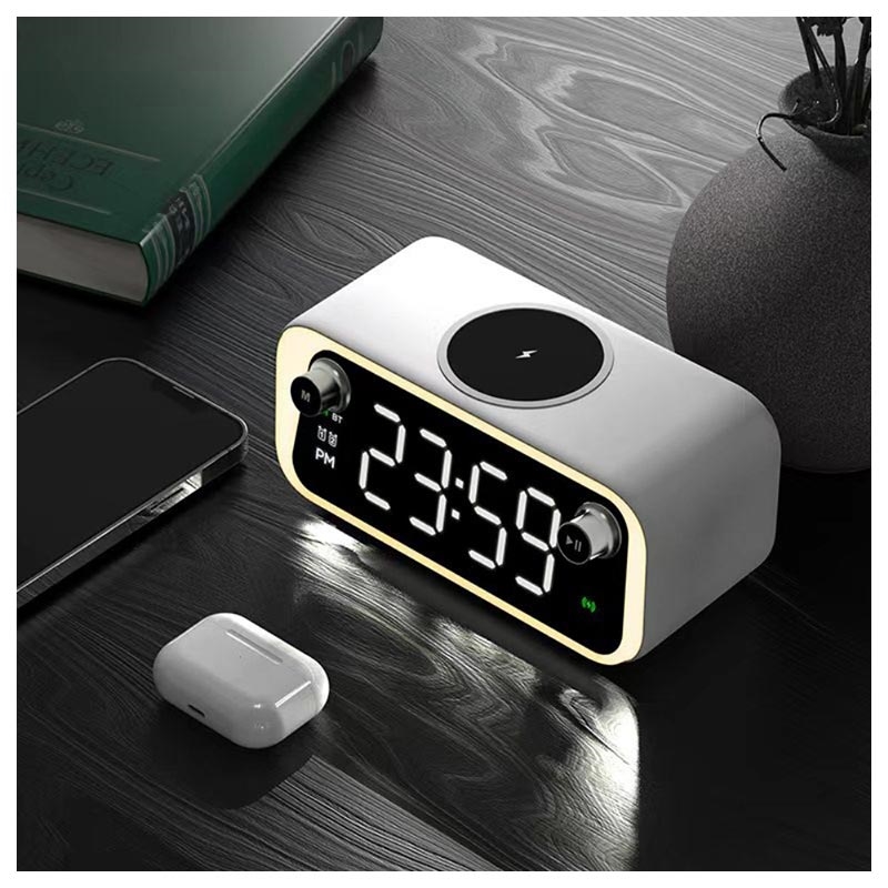 Multifunkční Bluetooth Reproduktor / Bezdrátová Nabíječka s Budíkem a Nočním Světlem - FM rádio, QC, PD - 15W