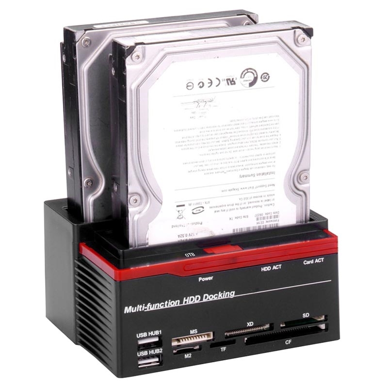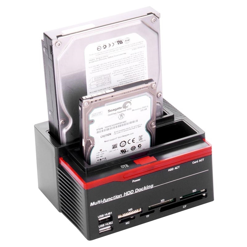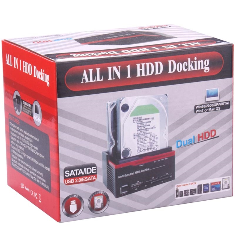 Multifunkční USB 2.0 až SATA/IDE Docking Station - HDD, SSD, M2, MS, XD, TF, SD, CF, 480 MB/S