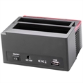 Připojte počítačovou a dokovací stanici prostřednictvím portu USB 2.0 a přenos dat z HDD, SSD nebo paměťové karty bez další instalace ovladače. Dva sloty s různými vstupy umožňují přímou výměnu dat mezi různými typy diskových jednotek. Přečtěte si data z téměř jakékoli paměťové karty, jednu po druhém. Zvyšte počet dostupných portů USB díky dvěma dalším rozbočovače USB a přenosu dat do 480 MB/s pomocí této výjimečné dokovací stanice!