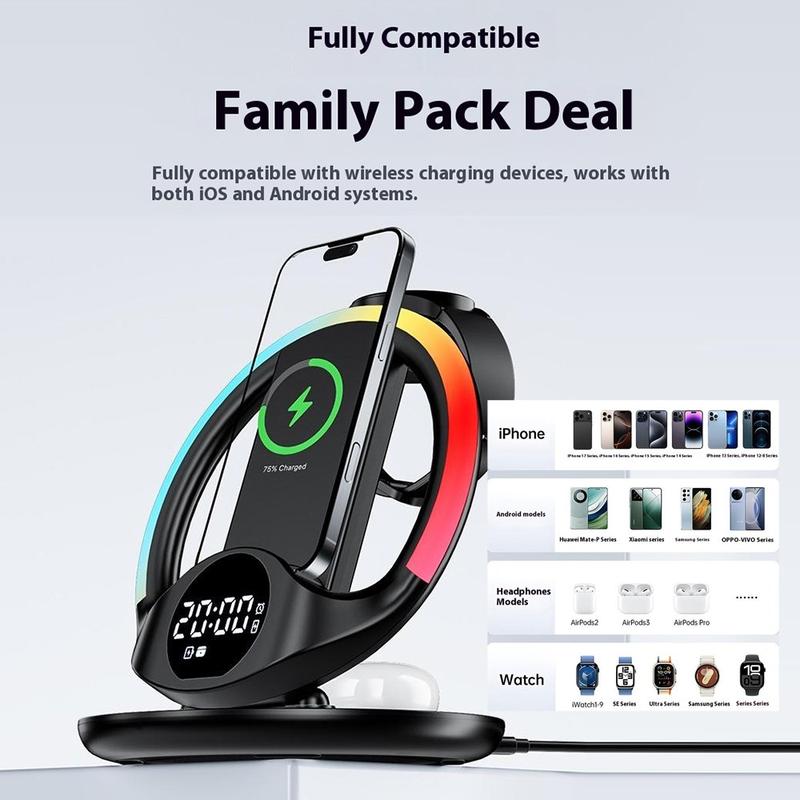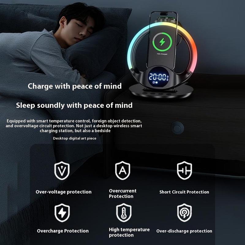 More than just a charger - it also functions as a digital clock and phone stand. Choose from five ambient LED backlight modes (white, pink white, red, ice blue, fantasy color) to match your mood or decor.