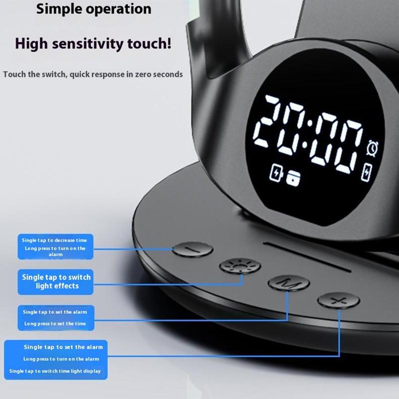 N01 6-in-1 Wireless Charging Station / Magnetic Fast Charging Stand with Alarm Clock, Smart Temperature Control and Night Light