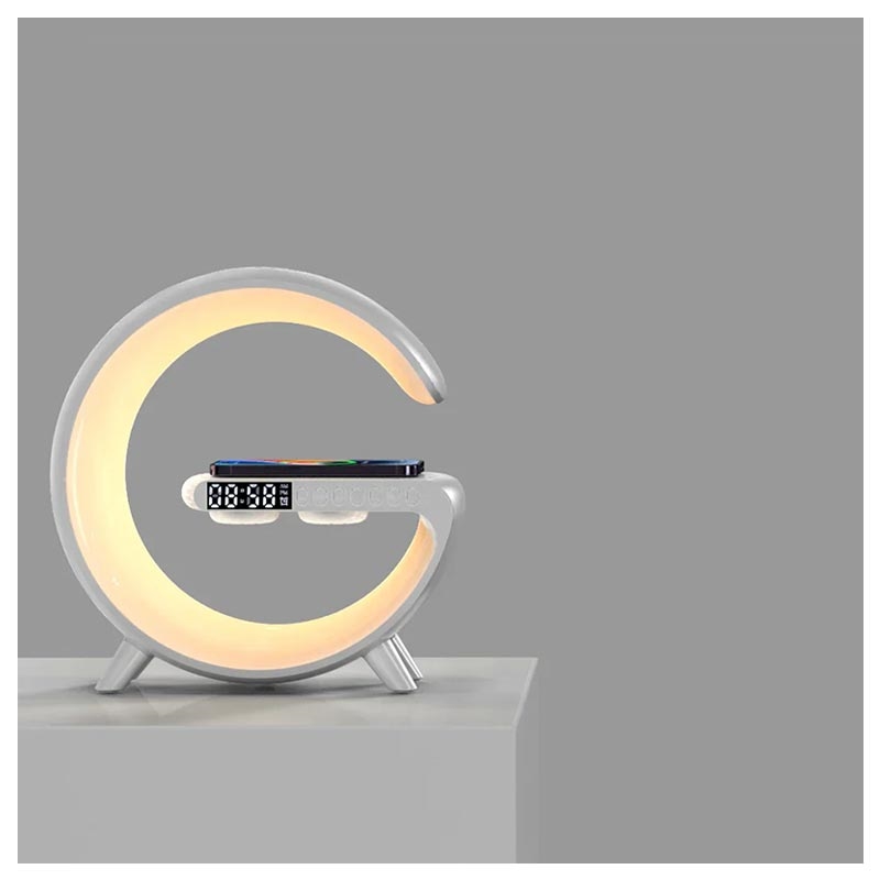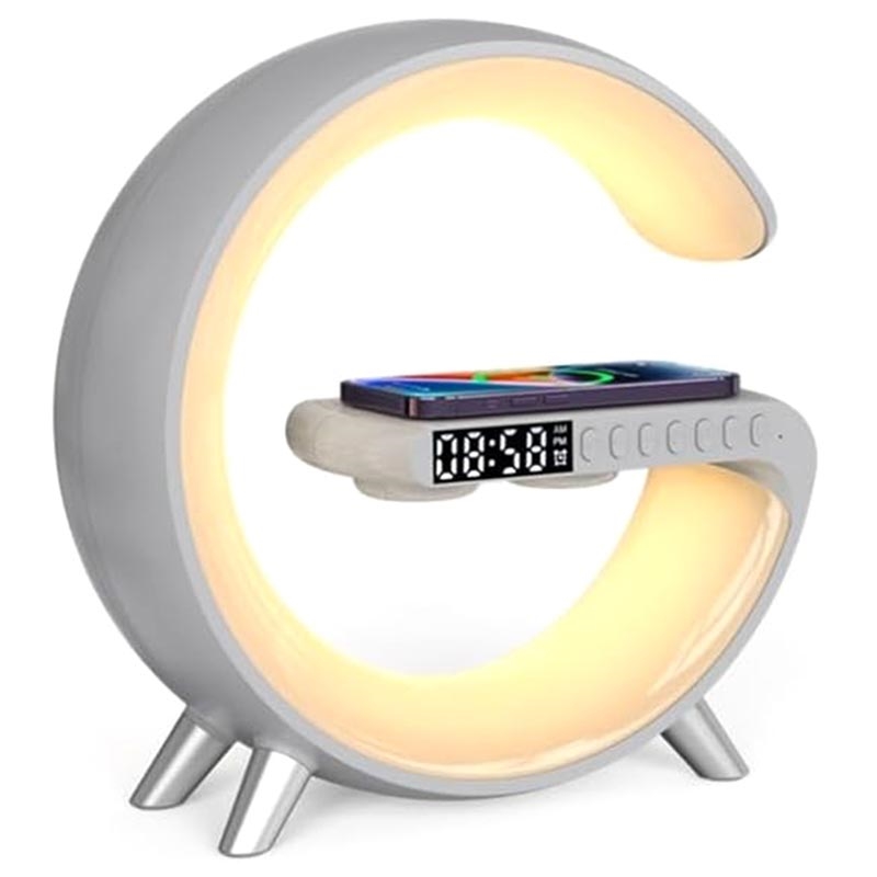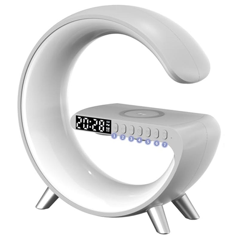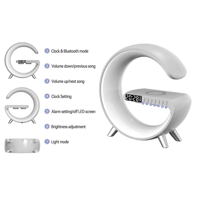 It features LED light, Bluetooth speaker, alarm clock, and 15W wireless charger function