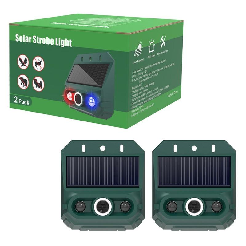 N911Z Solar-Powered Ultrasonic Bird Repellent with LED Flashing and Motion Sensor Alarm - 2 Pcs.