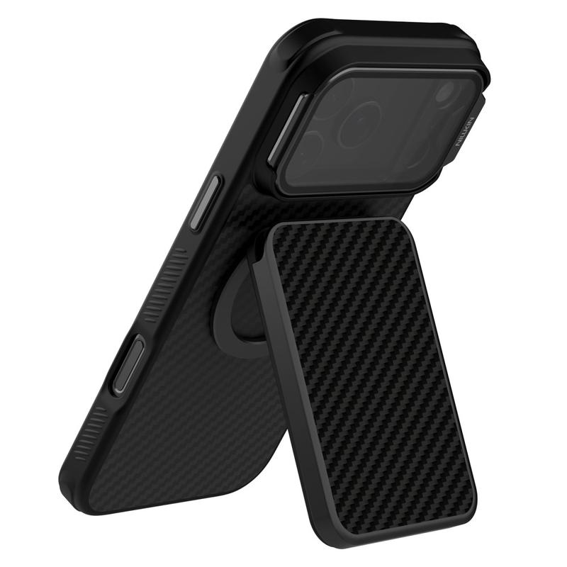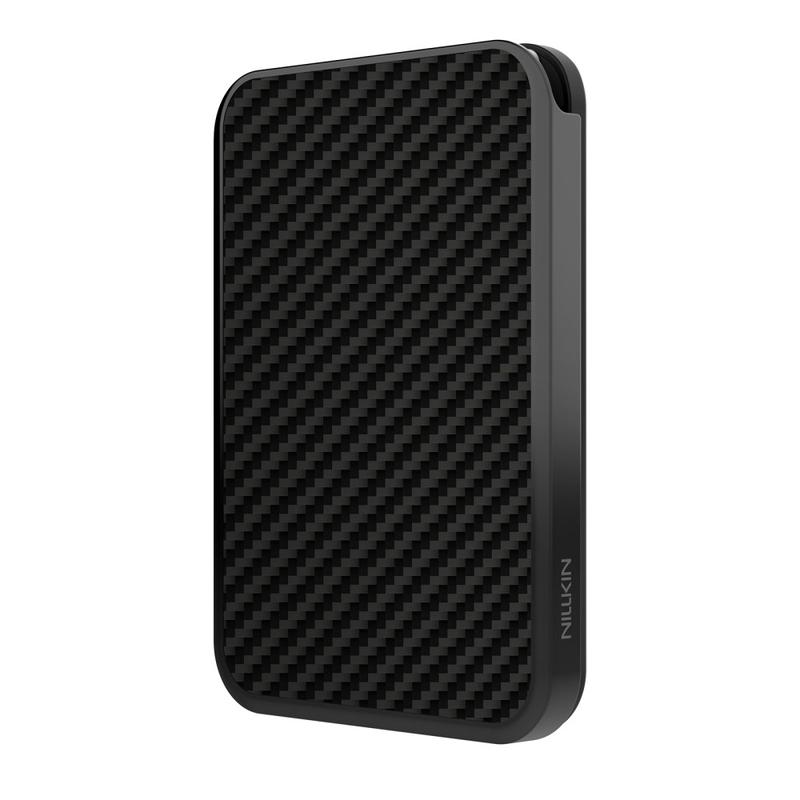 The Nillkin FiberMate MagSafe card holder is an ultra-slim aramid fiber phone card wallet with RFID blocking, dual N52 magnets, and space for 1-3 cards. Featuring a strong magnetic attachment, concealed card-release design, and adjustable stand function, it is a stylish and practical accessory for secure everyday card storage and hands-free phone use.