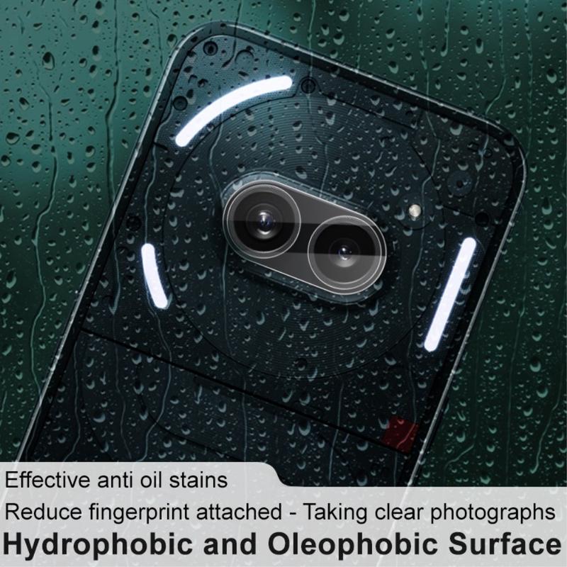 With its multiple reinforcements, this Imak HD camera lens tempered glass will keep the camera of your Nothing Phone (2a) perfectly safe against scratches and daily damage. Also, the hydrophobic and oleophobic surface reduces fingerprints while using your Nothing Phone (2a).