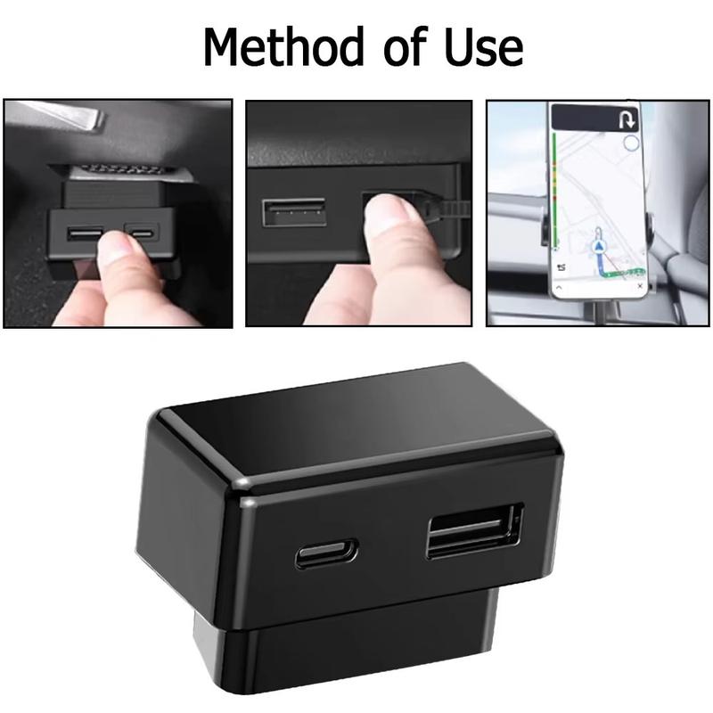 Enhance your Tesla Model 3 or Model Y experience with this Dual-Port Hidden PD Fast Charging Expansion Dock, designed to provide efficient and discreet power solutions for your devices. Utilizing the OBD interface, this charger offers seamless integration and rapid charging capabilities, ensuring your devices are powered throughout your journey.