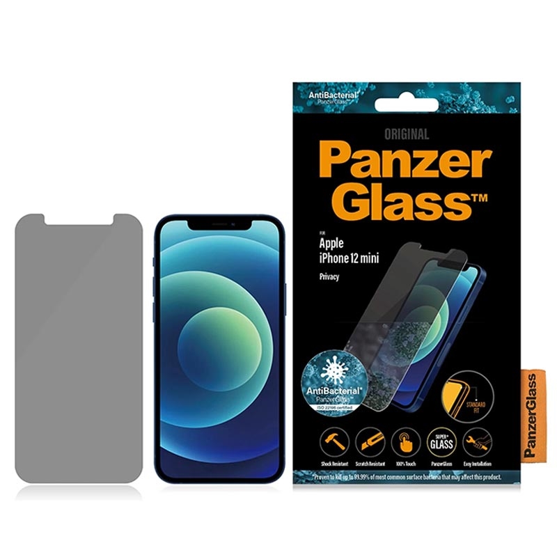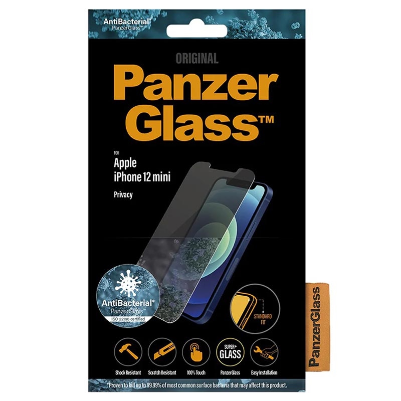 Antibakteriální ochranné tvrzené sklo PanzerGlass Standard Fit Privacy pro iPhone 12 Mini