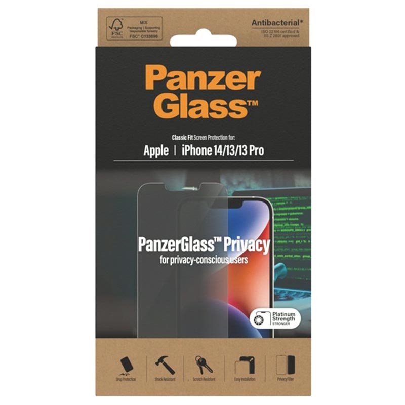 PanzerGlass Classic Fit Privacy AntiBacterial Ochranné Tvrzené Sklo pro iPhone 13, iPhone 13 Pro, iPhone 14