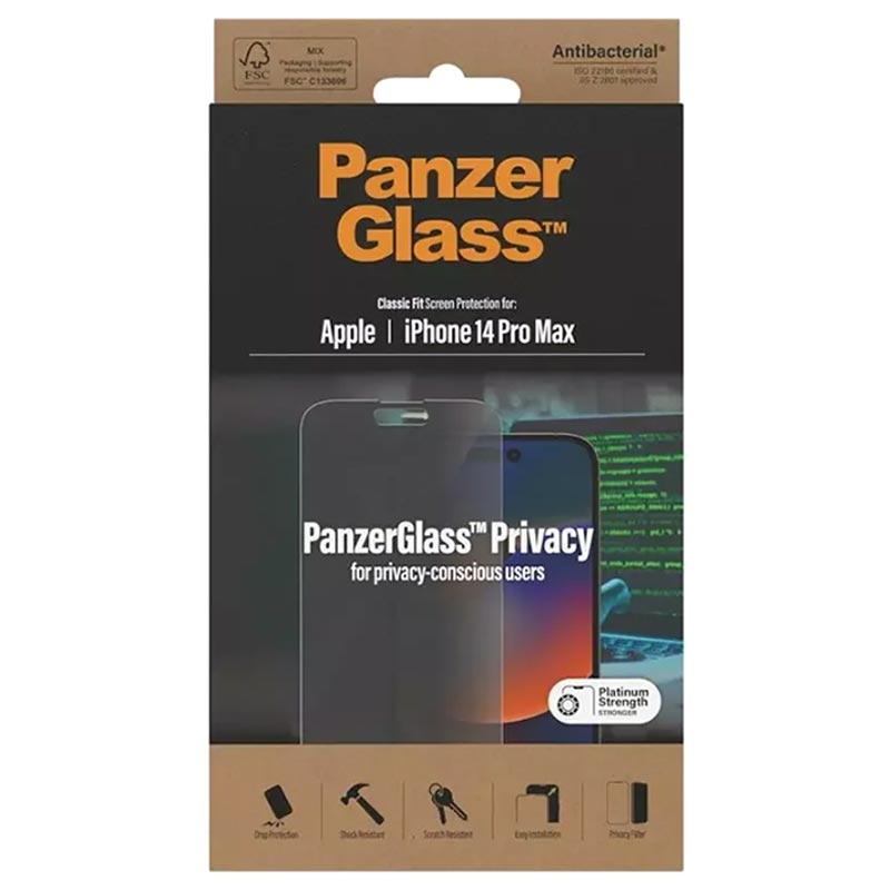 PanzerGlass Classic Fit Privacy AntiBacterial Ochranné Tvrzené Sklo pro iPhone 14 Pro Max