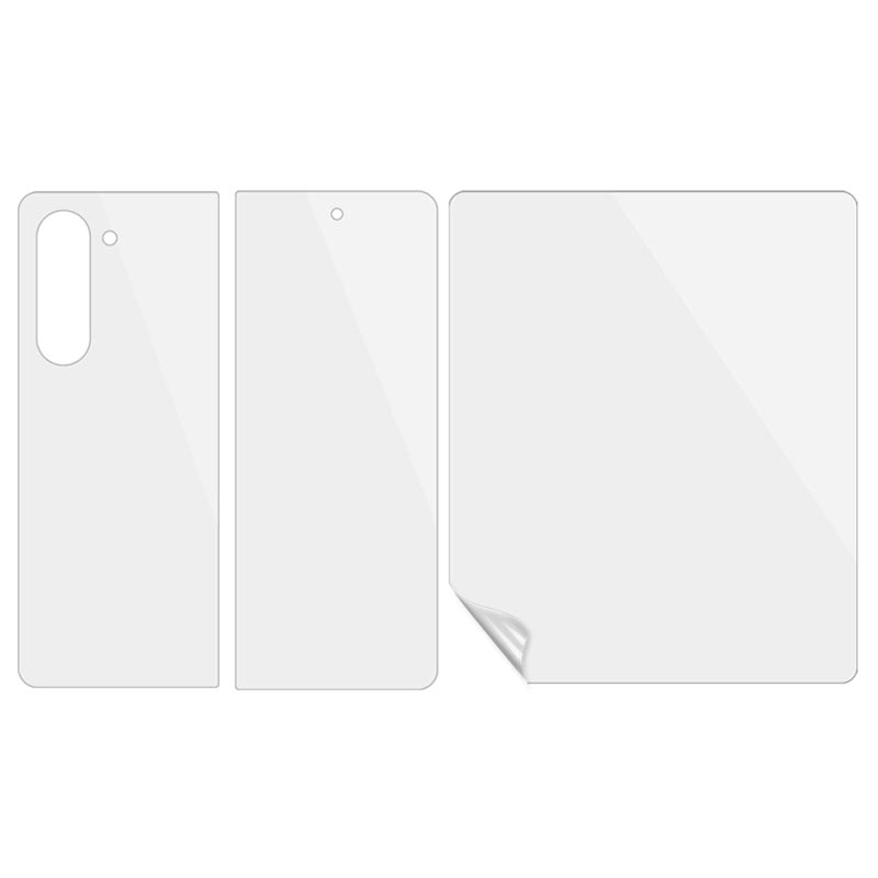 Zcela průhledný, zachovává barvu obrazovky, jas a původní vzhled vašeho Samsung Galaxy Z Fold5. Měkká a flexibilní sada ochrany ochrání váš Samsung Galaxy Z Fold5 před nečistotami, prachem, nárazy a poškrábáním.