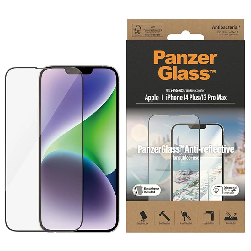 Ochranné tvrzené sklo PanzerGlass Ultra-Wide Fit Anti-Reflective EasyAligner AntiBacterial pro iPhone 13 Pro Max, iPhone 14 Plus