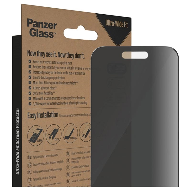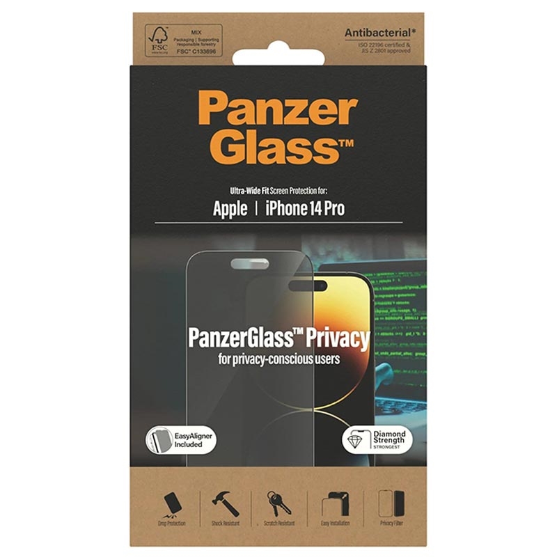 Ochranné tvrzené sklo PanzerGlass Ultra-Wide Fit Privacy EasyAligner AntiBacterial pro iPhone 14 Pro