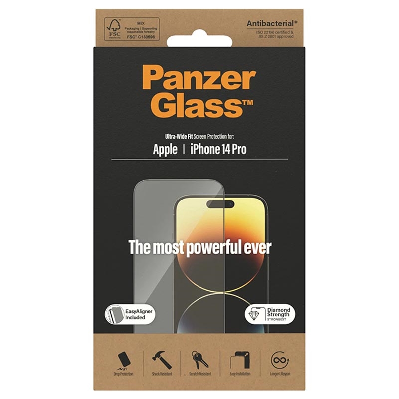 Ochranné tvrzené sklo PanzerGlass Ultra-Wide Fit EasyAligner AntiBacterial pro iPhone 14 Pro